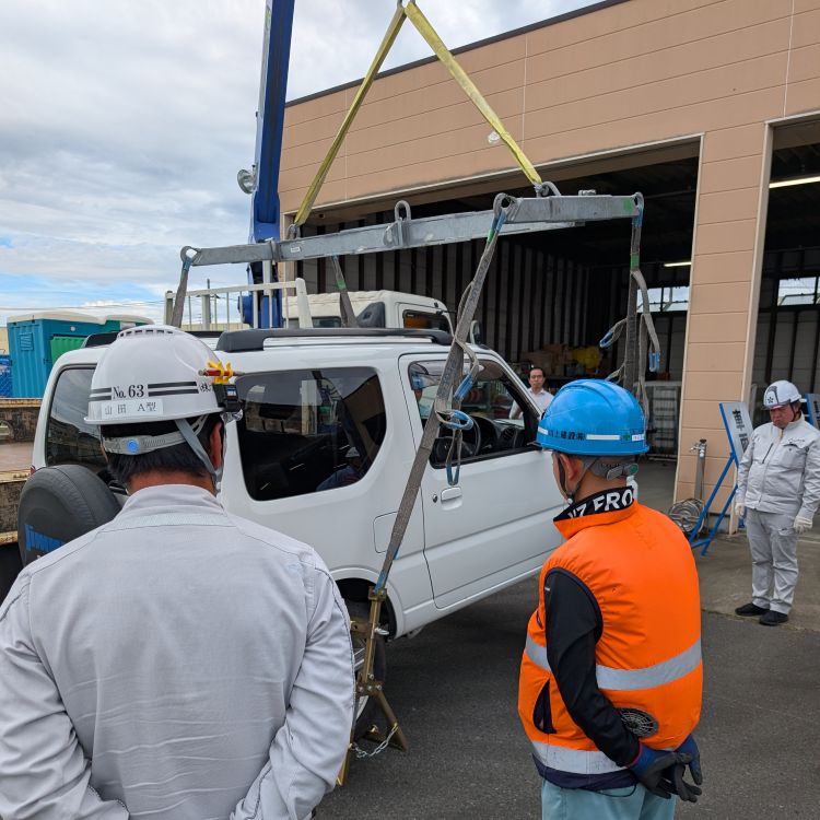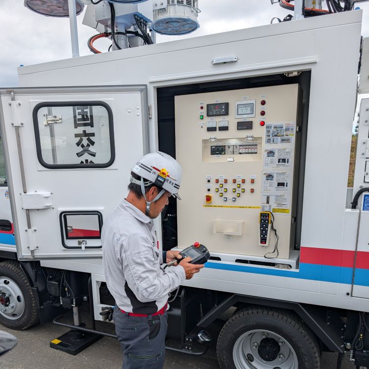 10/6に国土交通省の災害対策用機器の操作講習会に参加しました。災害時に河川国道事務所が貸し出せる車両を移動させるための機器の使い方を体験しました。